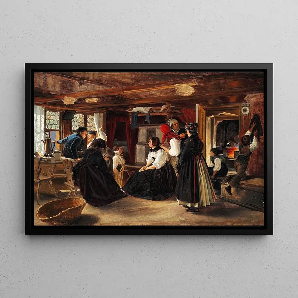 Wedding preparations: a moment of tenderness and celebration The art print of Wedding Preparations by Hermann Sondermann delicately illustrates the intimacy of a pivotal moment. This canvas, bathed in soft colors and warm lights, depicts a scene of preparation where emotion and anticipation intertwine. The characters, carefully arranged, seem captured in a silent dance, each absorbed in their thoughts and gestures. Sondermann's technique, blending realism with impressionist touches, creates an atmosphere that is both festive and contemplative, inviting the viewer to feel the magic of love and commitment. Hermann Sondermann: a reflection of everyday life Hermann Sondermann, a German artist from the early 20th century, is recognized for his ability to immortalize scenes of daily life with a unique sensitivity. Operating within an artistic context marked by the transition from Romanticism to Modernism, he captured simple yet emotionally charged moments. Influenced by the artistic movements of his time, Sondermann developed a style that combines precision and expressiveness, paying homage to the beauty of human interactions. His works, often tinged with nostalgia, testify to an era where family values and traditions were at the heart of society. A decorative acquisition with multiple assets The art print of Wedding Preparations is a decorative piece that will enhance any interior, whether it is a living room, dining room, or office. With its superior print quality and faithful reproduction of the original nuances, this canvas adds a touch of elegance and warmth to your space. Its aesthetic appeal, combined with the depth of its subject, makes it an ideal choice for those wishing to add an artistic dimension to their decor. By choosing this piece, you give your environment an atmosphere of softness and celebration, while paying tribute to Sondermann's art.
