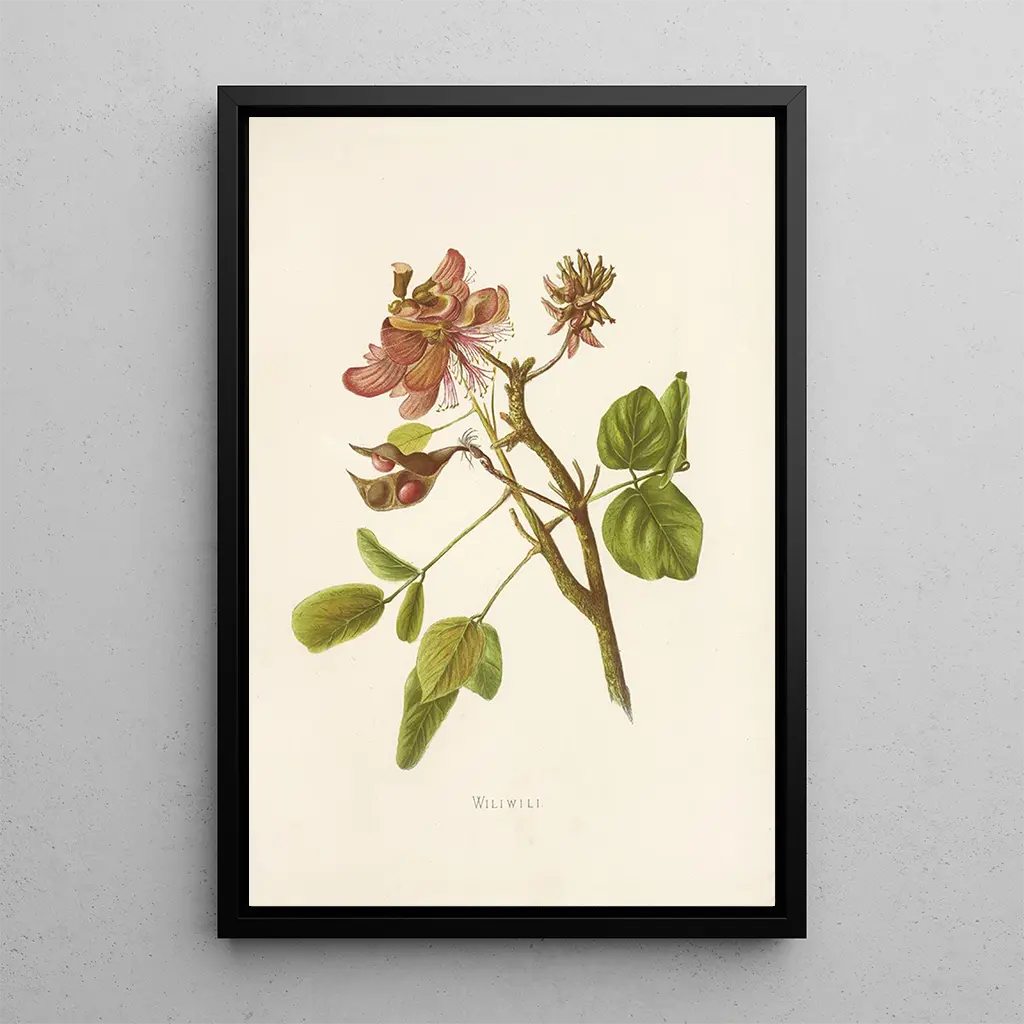 The art print Wiliwili by Isabella McHutcheson Sinclair immerses us in a vibrant universe where nature expresses itself with brilliance. The shimmering shades of green and red blend harmoniously, evoking the richness of tropical flora. The watercolor technique, used with finesse, creates delicate nuances that bring each leaf and petal to life. The overall atmosphere of the artwork invites serene contemplation, as if one could almost hear the whisper of the wind through the branches. Sinclair manages to capture the very essence of natural beauty, offering a window into a lush world.