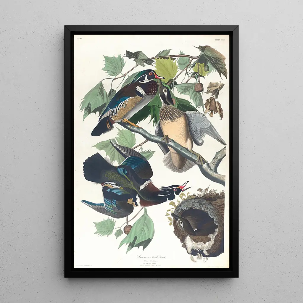 Canard d'été ou canard branchu : a reflection of aquatic serenity "Canard d'été ou canard branchu" is an iconic art print by John James Audubon that evokes the tranquility of aquatic environments. With a palette of soft and harmonious colors, this art print captures the beauty of this bird in its natural habitat. The shades of green, blue, and brown blend to create a peaceful atmosphere, while the details of the feathers and reflections in the water add a realistic dimension to the scene. Audubon succeeds in conveying a sense of calm and serenity, inviting the viewer to immerse themselves in this suspended moment. John James Audubon : a master of nature John James Audubon, born in Haiti in 1785, is an emblematic figure of ornithological art. His work, created in the early 19th century, is marked by a deep respect for nature and a quest for scientific accuracy. Audubon traveled across the United States, observing and documenting birds in their environment. His style, influenced by Romanticism, combines realism and poetry, allowing him to capture the beauty and diversity of avian species. "Canard d'été ou canard branchu" perfectly illustrates his approach, blending art and science in a celebration of wildlife. A decorative acquisition with multiple advantages The art print "Canard d'été ou canard branchu" is an ideal decorative choice to bring a touch of nature into your interior. Whether in a living room, bedroom, or office, this canvas integrates harmoniously into various decorating styles. Its printing quality guarantees fidelity to the original details, paying tribute to Audubon's work. By choosing this piece, you add not only an aesthetic element to your space but also encourage an appreciation for the beauty of wildlife and natural environments.