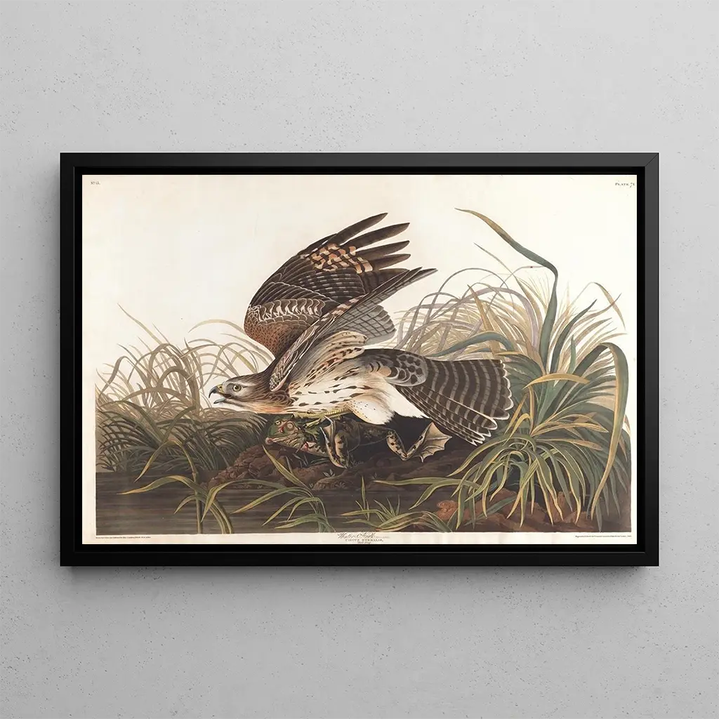 Winter Falcon: An Avian Majesty Captured in Time The "Winter Falcon" art print by John James Audubon is a striking depiction of the beauty and power of this bird of prey. With meticulous attention to detail, Audubon portrays the falcon in a dynamic posture, ready to take flight. The vivid colors and realistic textures of its feathers contrast with the more subdued background, highlighting the majesty of this animal. The piece not only evokes the splendor of nature but also reflects Audubon's fascination with wildlife, demonstrating his commitment to capturing the wild with precision and passion. John James Audubon: Pioneer of Artistic Ornithology John James Audubon, born in Haiti in 1785, was a renowned naturalist and artist known for his ornithological studies. His work, spanning several decades, revolutionized the way birds were depicted in art. Influenced by Romanticism and Realism, Audubon traveled across North America to observe and draw bird species in their natural habitats. His scientific and artistic approach helped document endangered species and raised awareness about conservation. "Winter Falcon" is one of his iconic works, showcasing his exceptional talent and dedication to nature. A Decorative Acquisition with Multiple Benefits The art print of "Winter Falcon" is a decorative piece that will captivate all art and nature enthusiasts. Ideal for a living room, office, or bedroom, this canvas adds a touch of sophistication and authenticity to your interior decor. Its reproduction quality ensures remarkable fidelity to the original details and colors, allowing you to fully appreciate Audubon's talent. With its powerful visual appeal, this artwork becomes a central element that enriches your space while celebrating the beauty of avian wildlife.