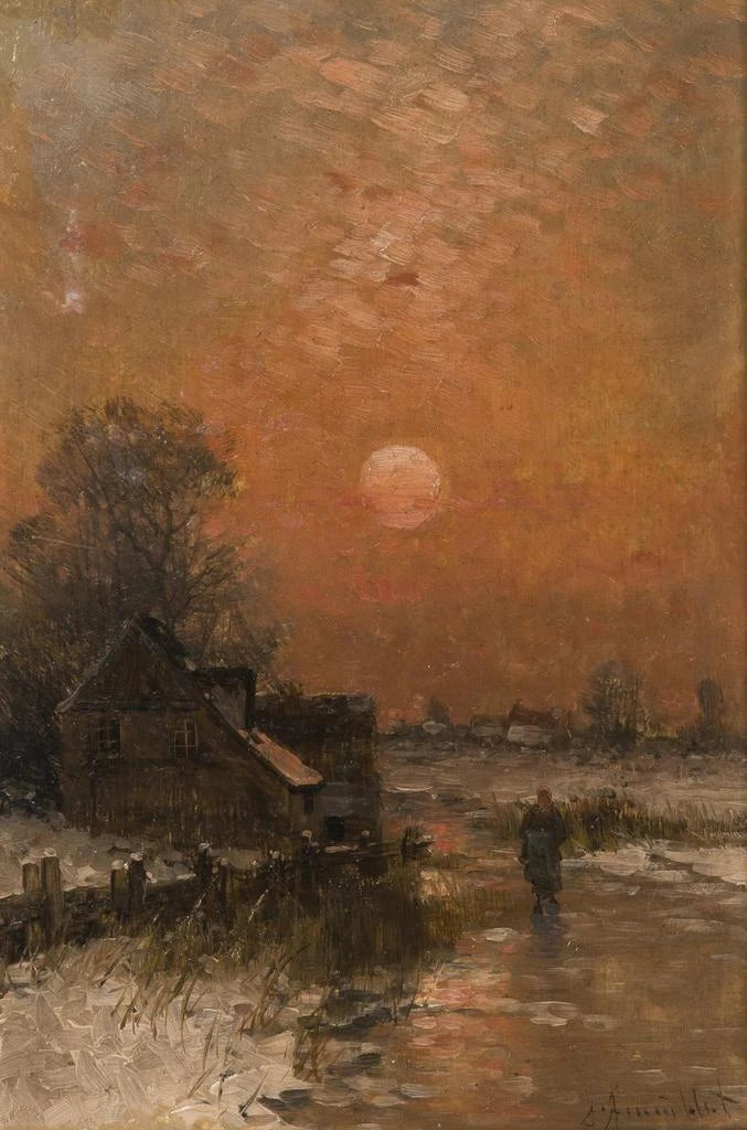 Johann Jungblut, a 19th-century painter, is often associated with the romantic movement, which celebrates nature and emotion. His work, marked by meticulous attention to detail and variations in light, reflects a deep admiration for natural landscapes. Influenced by the great masters of his time, Jungblut developed a unique style that combines realism and poetry. "Winter" is a perfect example of his talent, illustrating the ephemeral beauty of seasonal landscapes and the importance of nature in his work.