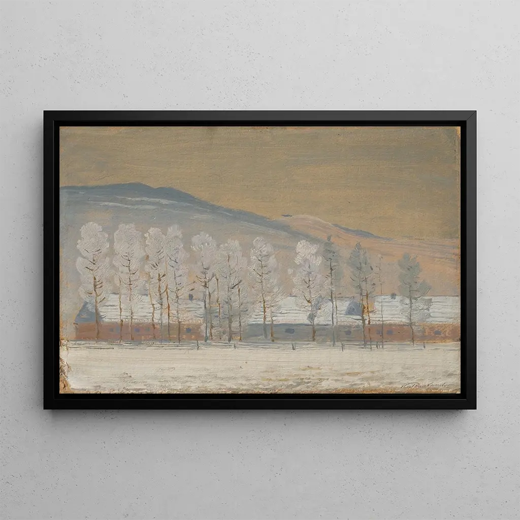Paysage d'hiver près de Diar : an winter serenity to contemplate The art print "Paysage d'hiver près de Diar" by Ferdinand Katona evokes a peaceful and silent atmosphere, where snow delicately covers the landscape. The cool shades of blue and white blend harmoniously, creating a subtle contrast with the touches of brown on the bare trees. Katona's technique, characterized by precise brushstrokes and meticulous attention to detail, allows you to feel the freshness of the winter air. This art print invites meditative contemplation, where each element seems frozen in time, offering a moment of respite away from the hustle and bustle of the modern world. Ferdinand Katona: a master of romantic landscape Ferdinand Katona, active in the 19th century, is recognized for his evocative landscapes that capture the beauty of nature. Influenced by the Romantic movement, he draws inspiration from the great masters of the era, while developing a personal style that emphasizes emotion and atmosphere. His works, often imbued with melancholy, reflect a deep connection with nature and a desire to convey intense sensations. Katona established himself as a major artist of his time, and "Paysage d'hiver près de Diar" remains one of his most appreciated creations, demonstrating his undeniable talent. A decorative acquisition with multiple assets The art print of "Paysage d'hiver près de Diar" is an ideal decorative piece to bring a touch of serenity to your interior. Whether in a living room, office, or bedroom, this art print invites dreaming and contemplation. Its reproduction quality guarantees remarkable fidelity to the original details, allowing you to fully enjoy the aesthetic appeal of the work. With its delicate nuances and soothing atmosphere, this canvas will enhance your decor while creating a warm and welcoming ambiance.