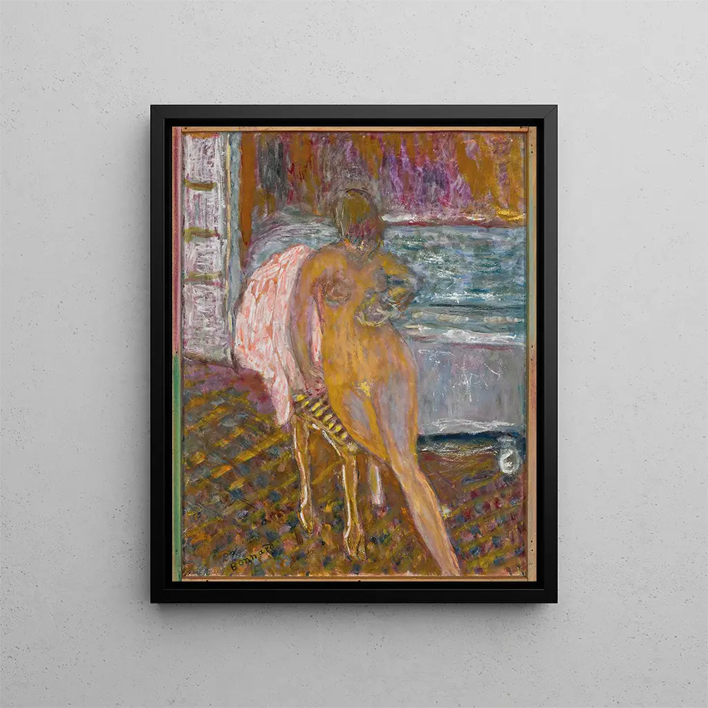 In 'Woman Preparing', Pierre Bonnard immerses us in the intimacy of a daily moment, exploring themes of femininity and beauty. The artwork, rich in colors and textures, highlights the tenderness of gestures and the calm atmosphere of the scene. Bonnard, master of light, plays with reflections and shadows to create a warm, almost meditative ambiance. This art print is not only an aesthetic representation but also an invitation to appreciate the small moments of life. As a decorative element, it adds a dimension of serenity and elegance to any space, echoing the beauty of daily rituals. Let yourself be captivated by this art print on Artem Legrand.