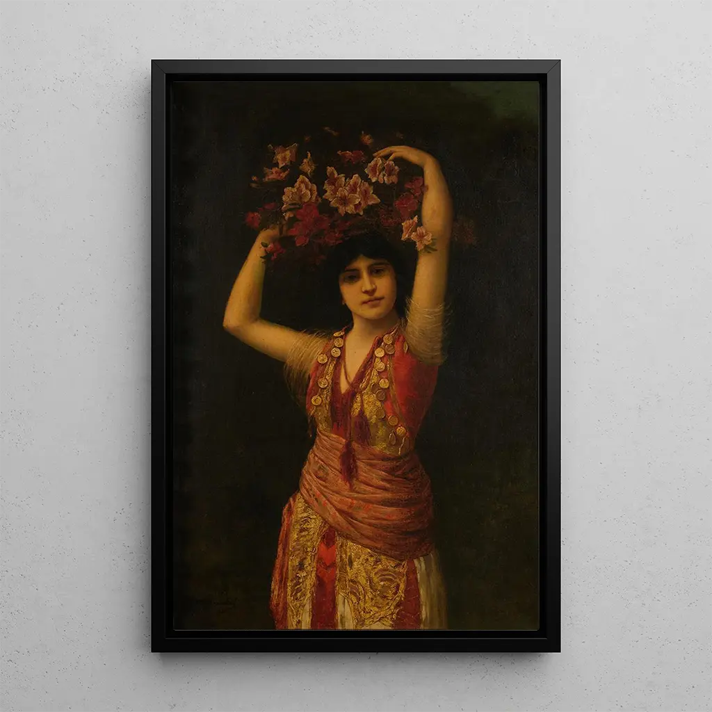 Femme avec Panier : une ode à la féminité et à la vie quotidienne Dans "Femme avec Panier", Jean-Joseph Benjamin-Constant dépeint une scène intimiste où la beauté du quotidien se dévoile à travers le regard d'une femme portant un panier. Les couleurs douces et lumineuses, ainsi que la délicatesse des traits, créent une atmosphère chaleureuse et accueillante. La composition met en valeur la grâce de la figure féminine, tandis que les détails du panier et des vêtements ajoutent une touche de réalisme. Cette œuvre invite à apprécier la simplicité et la beauté des gestes quotidiens, célébrant ainsi la vie dans toute sa splendeur. Jean-Joseph Benjamin-Constant : l'artiste au cœur de l'orientalisme Jean-Joseph Benjamin-Constant, peintre français né en 1845, est une figure emblématique de l'orientalisme. Sa carrière, marquée par des voyages en Afrique du Nord, lui a permis d'explorer des thèmes exotiques et de les traduire avec une sensibilité unique. "Femme avec Panier" illustre parfaitement son talent pour capturer la beauté des femmes et des scènes de la vie quotidienne dans un style riche et coloré. À travers ses œuvres, il a contribué à façonner la perception de l'Orient en Europe, offrant une vision romantique et idéalisée de ces cultures. Une acquisition décorative aux multiples atouts La reproduction de "Femme avec Panier" est un choix judicieux pour enrichir votre décoration intérieure. Que ce soit dans un salon, une salle à manger ou un bureau, cette toile apportera une touche d'élégance et de sérénité à votre espace. Sa qualité de reproduction assure une fidélité remarquable aux détails et aux couleurs de l'œuvre originale, permettant ainsi de profiter pleinement de son charme. En intégrant cette œuvre à votre collection, vous ajoutez non seulement une pièce artistique, mais aussi une invitation à célébrer la beauté du quotidien et la féminité dans toute sa splendeur.