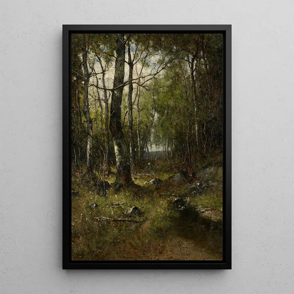 Dans l'œuvre "Bois du temple", Max Weyl nous transporte au cœur d'une nature luxuriante où les arbres majestueux semblent murmurer des secrets ancestraux. La composition, riche en nuances de verts et de bruns, évoque une atmosphère paisible et contemplative. Les jeux de lumière filtrant à travers le feuillage créent un contraste saisissant, invitant le spectateur à s'imprégner de la sérénité qui émane de cette scène. La technique de Weyl, mêlant impressionnisme et réalisme, donne vie à chaque détail, rendant presque palpable l'air frais et pur de cette forêt sacrée.