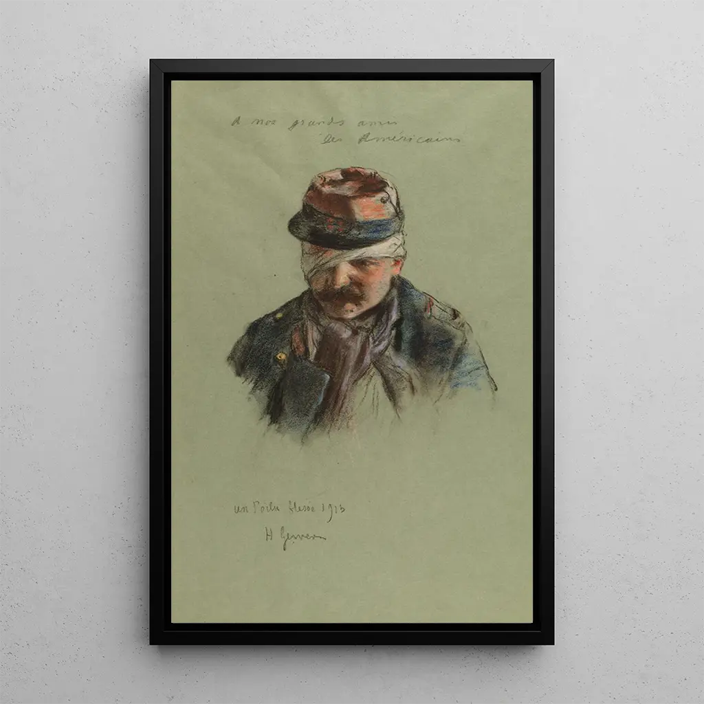 Un Poilu blessé : un hommage à la bravoure et à la souffrance Dans cette œuvre poignante, Henri Gervex capture l'essence de la souffrance humaine à travers le portrait d'un soldat blessé, un "Poilu". La composition met en avant des couleurs terreuses et des nuances de bleu qui évoquent à la fois la douleur et l'espoir. La technique de Gervex, mêlant réalisme et impressionnisme, crée une atmosphère à la fois intime et universelle. Le regard du soldat, empreint de résilience, nous interpelle et nous invite à réfléchir sur les conséquences de la guerre. Ce tableau, véritable cri du cœur, témoigne de l'impact émotionnel des conflits sur les individus. Henri Gervex : un témoin de son temps Henri Gervex, né en 1852, est un peintre français dont l'œuvre s'inscrit dans la période post-impressionniste. Influencé par les grands maîtres de son époque, il développe un style unique qui allie réalisme et sensibilité. Gervex est particulièrement connu pour ses représentations de la vie quotidienne et des scènes de la Belle Époque. Son engagement envers des sujets sociaux, comme la guerre et la condition humaine, lui confère une place importante dans l'histoire de l'art. En peignant des thèmes aussi poignants que "Un Poilu blessé", il contribue à immortaliser les luttes et les sacrifices de son époque. Une acquisition décorative aux multiples atouts La reproduction de "Un Poilu blessé" est une pièce décorative qui saura enrichir votre intérieur, que ce soit dans un salon, un bureau ou une chambre. Sa qualité d'impression garantit une fidélité remarquable à l'œuvre originale, permettant de ressentir toute l'émotion transmise par Gervex. Ce tableau, à la fois esthétique et chargé de sens, attire le regard et suscite des conversations. En intégrant cette toile dans votre décoration, vous offrez à votre espace une touche d'histoire et de profondeur, tout en rendant hommage à la bravoure des soldats.
