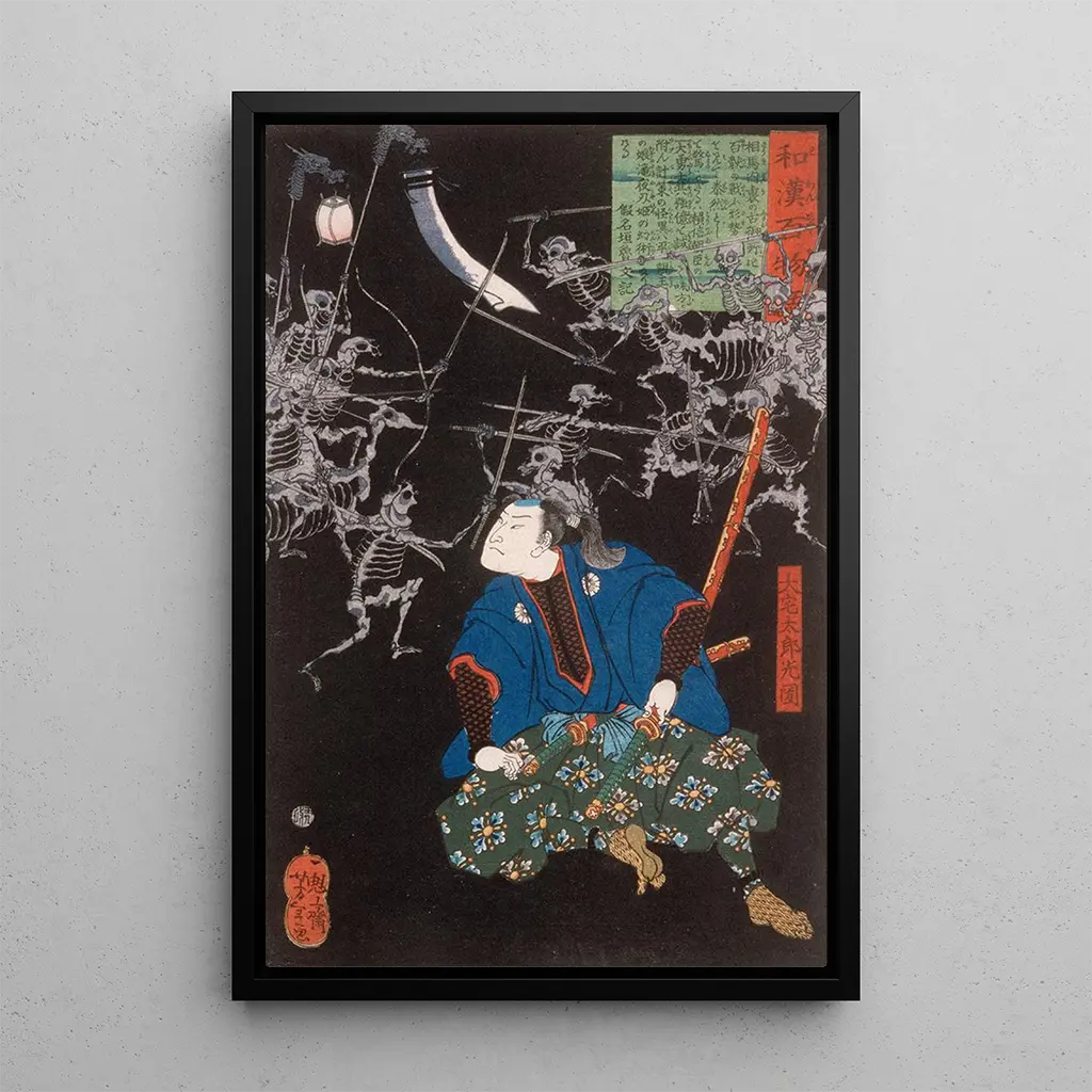 Tsukioka Yoshitoshi, born in 1839, is recognized as one of the last great masters of ukiyo-e art prints, a traditional Japanese art form. His career was marked by diverse influences, ranging from ancient traditions to new artistic movements emerging during his time. "ya Tar Mitsukune observant des squelettes" illustrates his talent for blending folkloric elements with modern techniques, creating works that appeal to both traditional and contemporary art enthusiasts. Yoshitoshi managed to capture the essence of popular stories while adding his own unique vision.