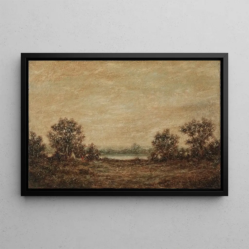 The artwork "Yellow Light" by Ralph Albert Blakelock immerses us in a dreamlike landscape where light plays a central role. The golden and orange hues blend harmoniously, creating a warm and soothing atmosphere. The oil painting technique allows Blakelock to capture the subtlety of shadows and lights, bringing the scene to life. The majestic trees, bathed in this golden light, seem to dance in the breeze, inviting the viewer to a silent and meditative contemplation. Each brushstroke reveals emotional depth, making this canvas a true ode to the beauty of nature.