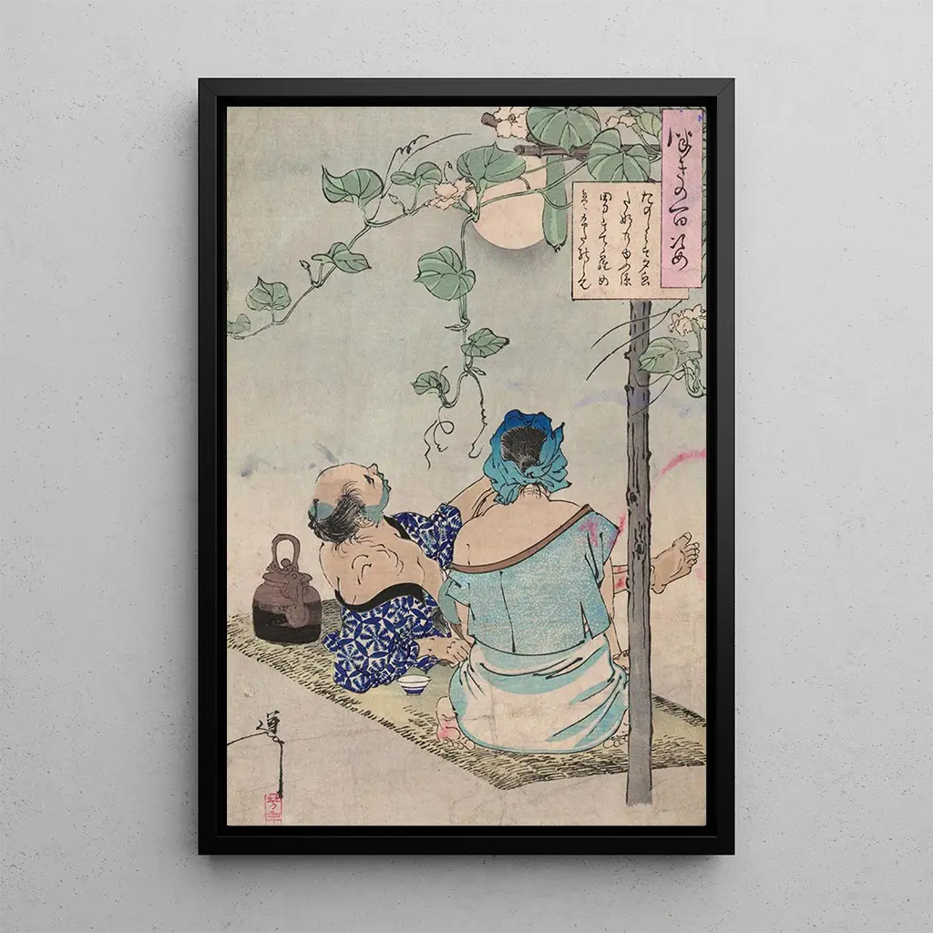 In the art print Ygao dana nry zu, Tsukioka Yoshitoshi immerses us in a universe where beauty and melancholy intertwine. The composition is rich in detail, with each character carefully positioned to create a captivating dynamic. The colors, both vivid and delicate, evoke a dreamlike atmosphere, while the technique of the Japanese woodblock print, with its flowing lines and subtle nuances, gives the piece unparalleled depth. This artwork invites contemplation, gradually revealing its secrets to those who take the time to observe it.