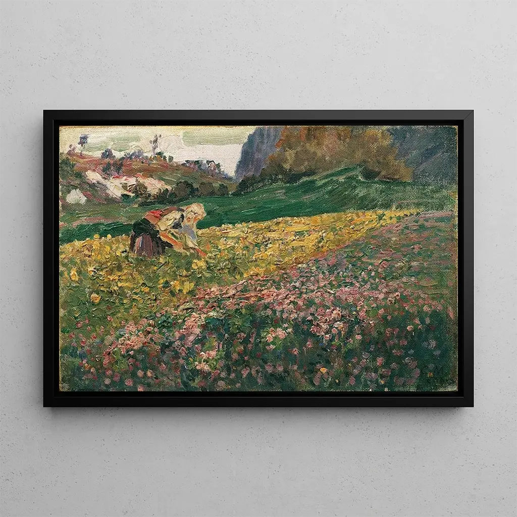 Young Girl in the Flowered Meadow: an ode to nature and youth Young Girl in the Flowered Meadow, a painting by Carl Moll, captures the essence of natural beauty and youthful innocence. The composition, bathed in light, features a young woman surrounded by vibrant flowers, creating a lively and joyful scene. The bright colors and delicate touches of oil paint evoke an atmosphere of serenity and happiness. Moll, with his Impressionist style, manages to convey a sense of freshness and lightness, inviting the viewer to marvel at the splendor of nature. Carl Moll: a master of Viennese Impressionism Carl Moll, born in 1861, was an Austrian painter recognized for his role in the Impressionist movement in Vienna. Influenced by artists like Monet and Renoir, he developed a unique style that combines light and color with a particular sensitivity. Moll was a founding member of the Vienna Secession, a group that sought to renew art by moving away from academic conventions. Young Girl in the Flowered Meadow perfectly illustrates his approach, blending refined technique with a poetic vision of everyday life and nature. A decorative acquisition with multiple assets The art print of Young Girl in the Flowered Meadow by Carl Moll is an ideal choice to enhance your interior decor. Whether in a living room, bedroom, or office, this piece adds a touch of freshness and color. Its printing quality guarantees fidelity to the vibrant nuances of the original, while adding an artistic dimension to your space. The aesthetic appeal of this canvas, with its joyful and luminous atmosphere, makes it a valuable addition for those wishing to create an inspiring and welcoming environment.