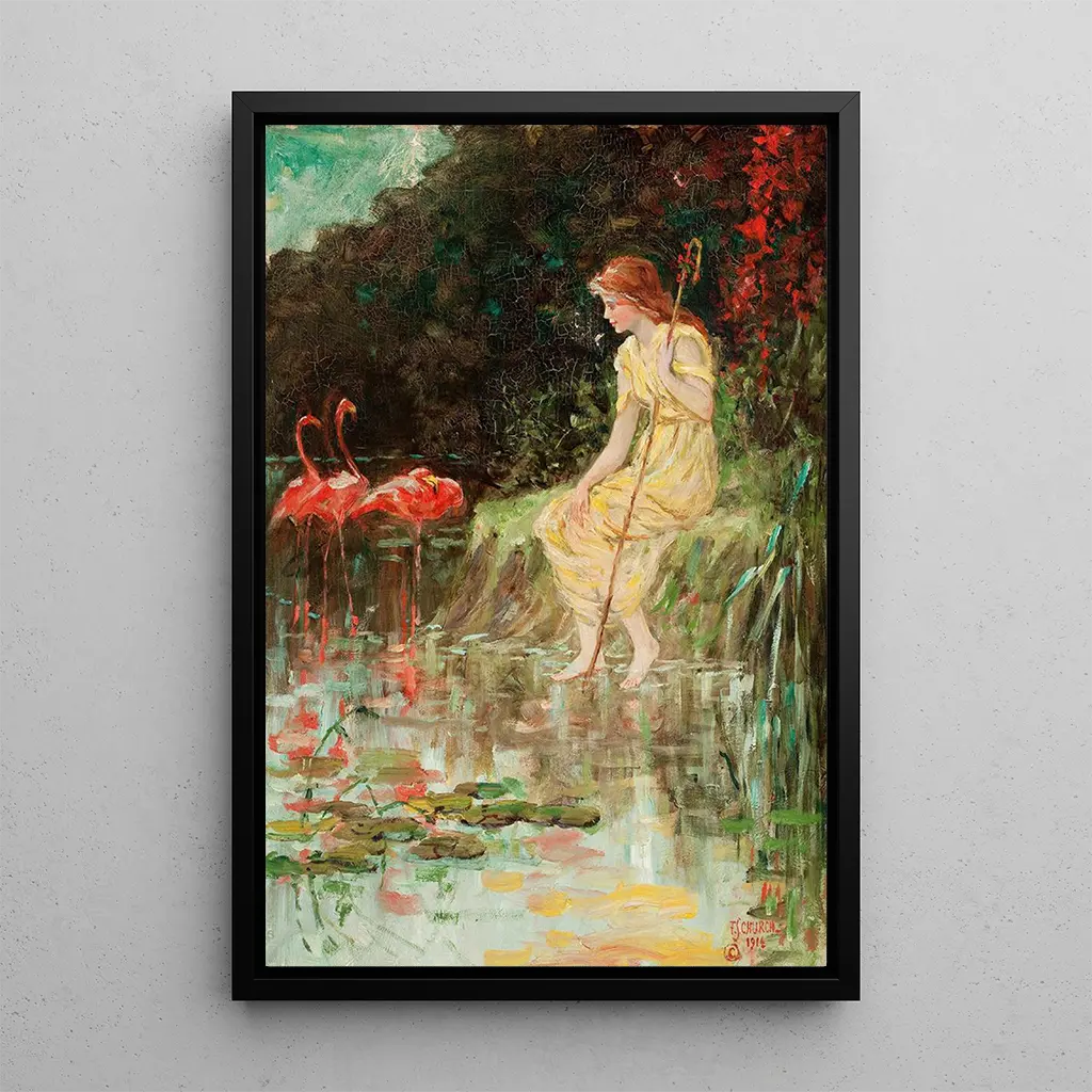 Painting Young Girl with Pink Flamingos - Frederick Stuart Church | Art print