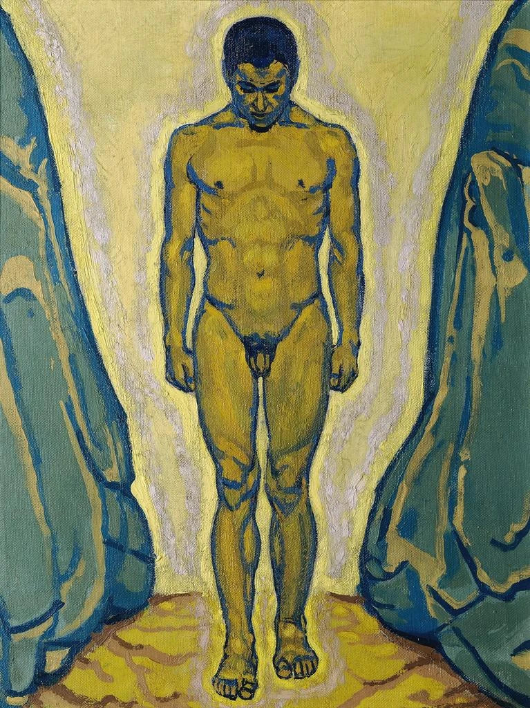 Young nude man standing among rocks - Koloman Moser