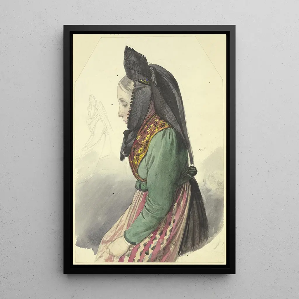 The art print of "Young Peasant Woman Facing Left" is a decorative item that harmoniously fits into various spaces, whether a living room, an office, or a bedroom. Its faithful print quality and aesthetic appeal make it an ideal choice for those seeking to add a touch of authenticity to their interior. This artwork, with its touching representation of rural life, sparks conversations and invites contemplation. By choosing this canvas, you opt for a piece that combines beauty and history, enriching your interior decoration.