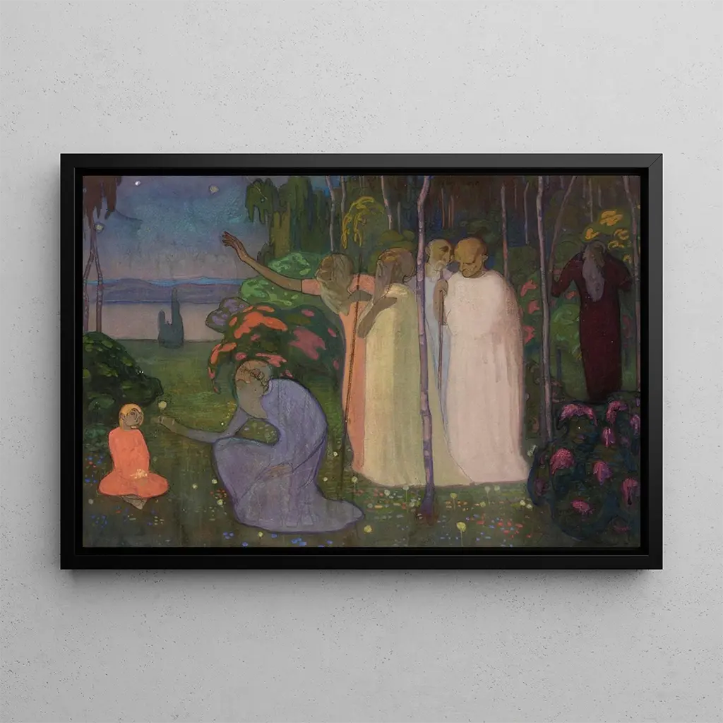 In this art print of Youth of Tüva Composition, Nikolai Triik immerses us in a vibrant universe where nature and culture meet. The bright colors and dynamic shapes evoke the vitality of youth and harmony with the environment. The composition, rich in details, invites the viewer to explore each element, from floral patterns to human figures, symbolizing the connection between man and his natural surroundings. The atmosphere emanating from this work is both joyful and contemplative, reflecting the artist's sensitivity.