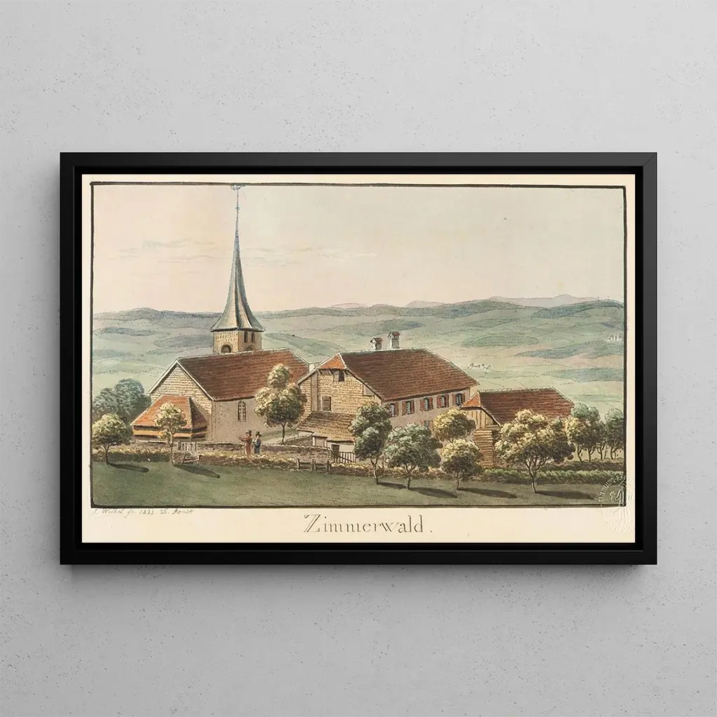 Zimmerwald: a scene of alpine serenity The art print Zimmerwald by Jakob Samuel Weibel transports us to the heart of a mountainous landscape imbued with tranquility. The soft shades of greens and blues blend harmoniously, evoking the freshness of Swiss alpine pastures. The watercolor technique, mastered by the artist, gives this piece a light and airy atmosphere, where each brushstroke seems to capture the light of a summer day. The delicate details of the trees and mountains invite peaceful contemplation, making this canvas a true visual refuge. Jakob Samuel Weibel: a master of nature Jakob Samuel Weibel, active in the 19th century, is recognized for his landscapes that celebrate the natural beauty of Switzerland. Influenced by Romanticism, he follows an artistic tradition that values meticulous observation of nature. His works, often imbued with melancholy and serenity, testify to an era when the artist sought to capture the very essence of the landscapes surrounding him. Although less known than some of his contemporaries, Weibel has left a lasting mark in the world of landscape art, making him an important figure of his time. A decorative acquisition with multiple assets The art print Zimmerwald is an ideal decorative piece to embellish your living room, office, or bedroom. Its print quality and fidelity to the original artwork guarantee a remarkable aesthetic rendering. By integrating this canvas into your interior, you bring a touch of nature and serenity, while enriching your living space. This painting, with its soothing nuances, will appeal to art lovers and landscape enthusiasts, turning each glance into a moment of contemplation and escape.
